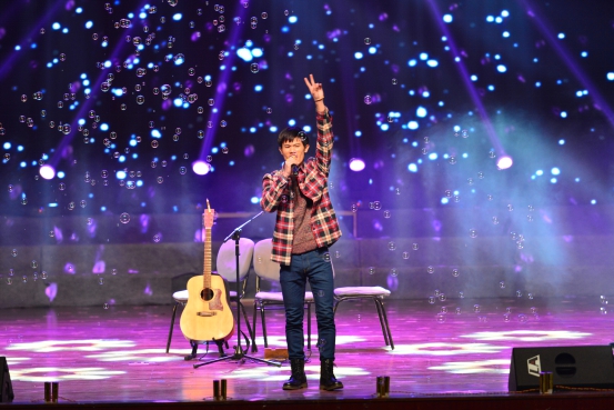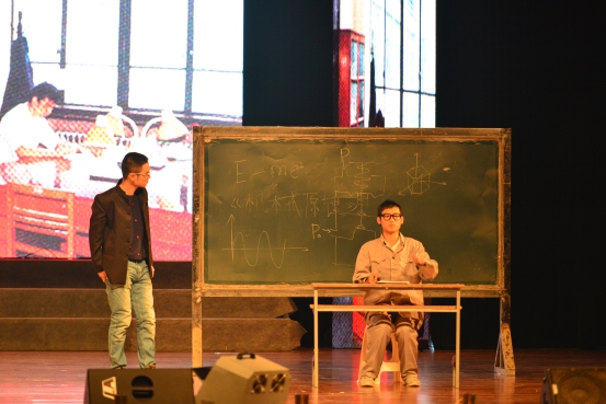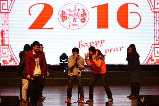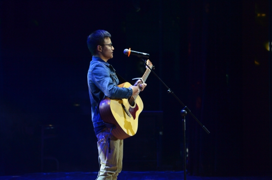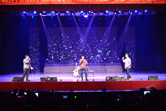这个灯火辉煌的夜晚带给我们的不仅是视觉的享受,也让我们的耳朵与音乐来一场美丽邂逅。流行歌曲串烧节目很荣幸邀请到王斌书记与梅仂盈辅导员上台献唱《给自己的歌》,“似水流年”冠军杨江陵自弹自唱的《Let her go》深情婉转,三名新生合唱的《青春修炼手册》和《离开地球表面》释放阳光活力,燃烧青春热情。微亮的舞台灯光,美妙静谧的背景视频以及那醇厚朴实的嗓音,民谣又如一杯老酒,一碗小米粥,滋润我们喧闹后逐渐沉寂下来的心灵。