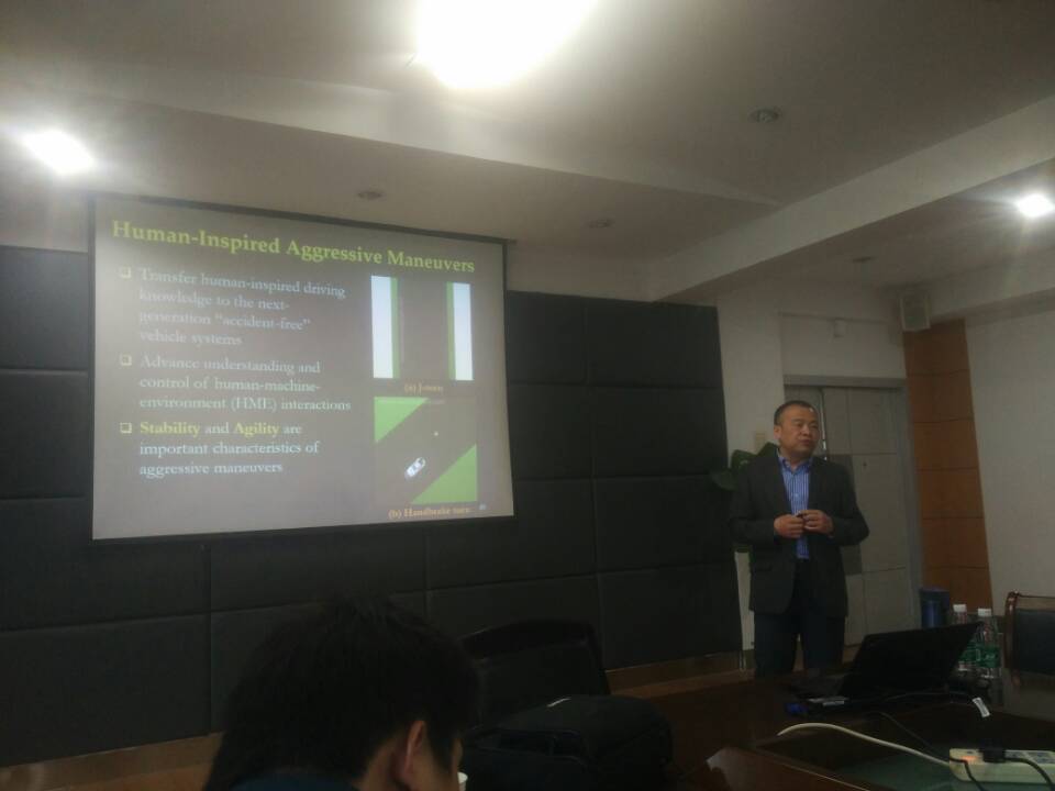 美国罗格斯大学Jingang Yi教授作题为“轮胎/路面交互动力学系统的估计、传感与控制”的讲座