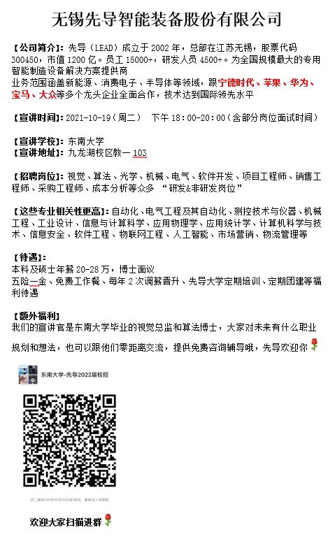 无锡先导智能装备股份有限公司校园招聘