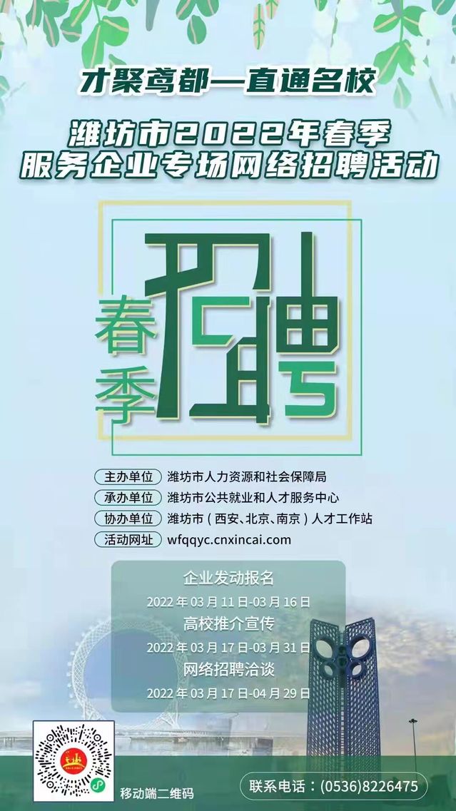 招聘|潍坊市2022年春季服务企业专场网络招聘活动
