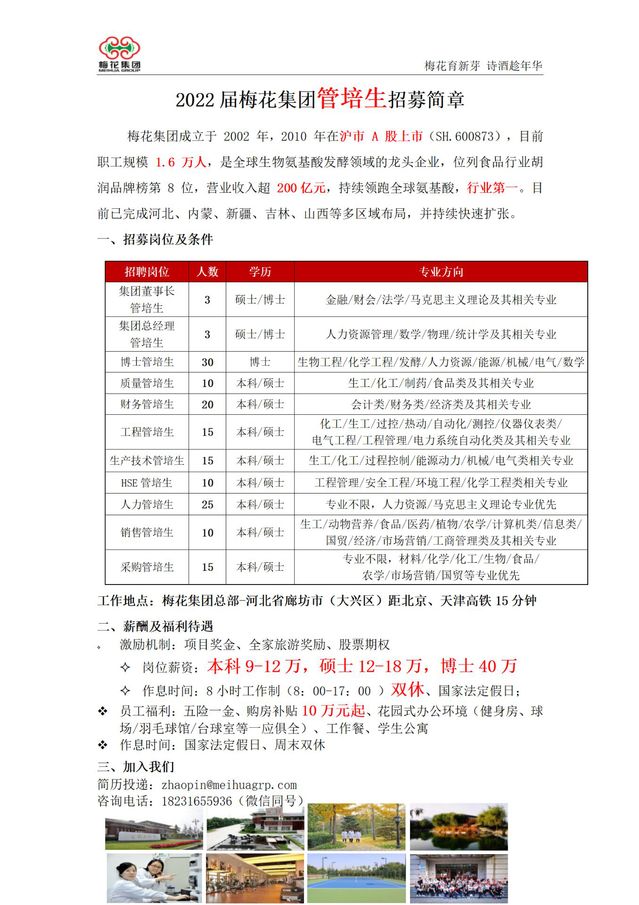 招聘|2022届梅花集团管培生招募