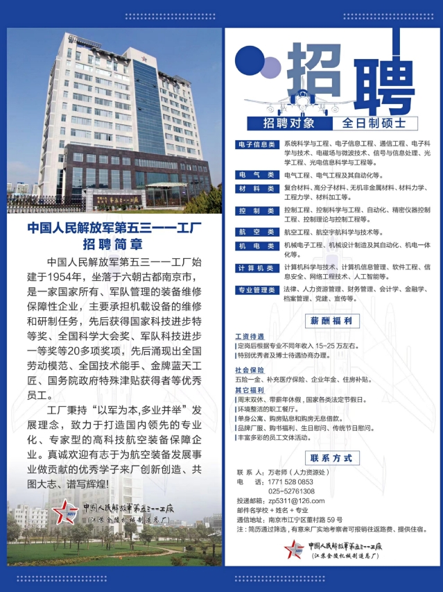 招聘|中国人民解放军第五三一一工厂