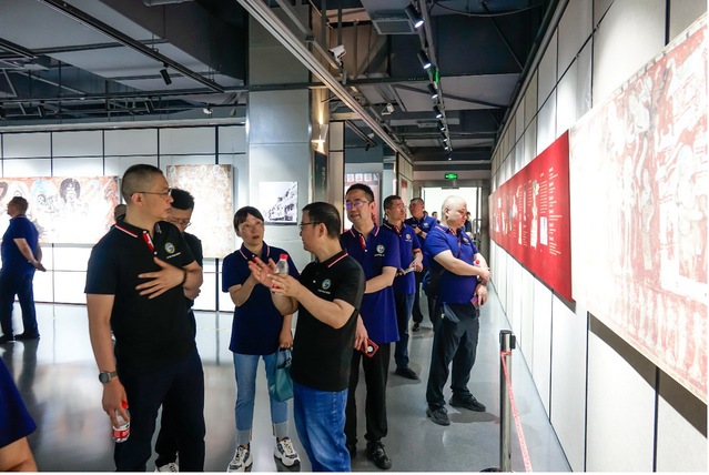 在启用仪式之后,校友们步行至图书馆正门,参观了“以非遗为名 与传承和创新对话——敦煌·彝绣联合展”,世界文化遗产敦煌+非物质文化遗产彝绣的文创创作,为中华优秀传统文化的传承与创新作出积极探索。展览将敦煌壁画艺术中的传统纹样与彝绣相结合,创作出的“鹿王本生”“敦煌飞天”“敦煌祥云”等系列精美彝绣作品。参观过程中,经介绍,校友们也了解到东南大学对南华县结对子帮扶情况,以及学校在彝绣产业扶持中取得的成效。