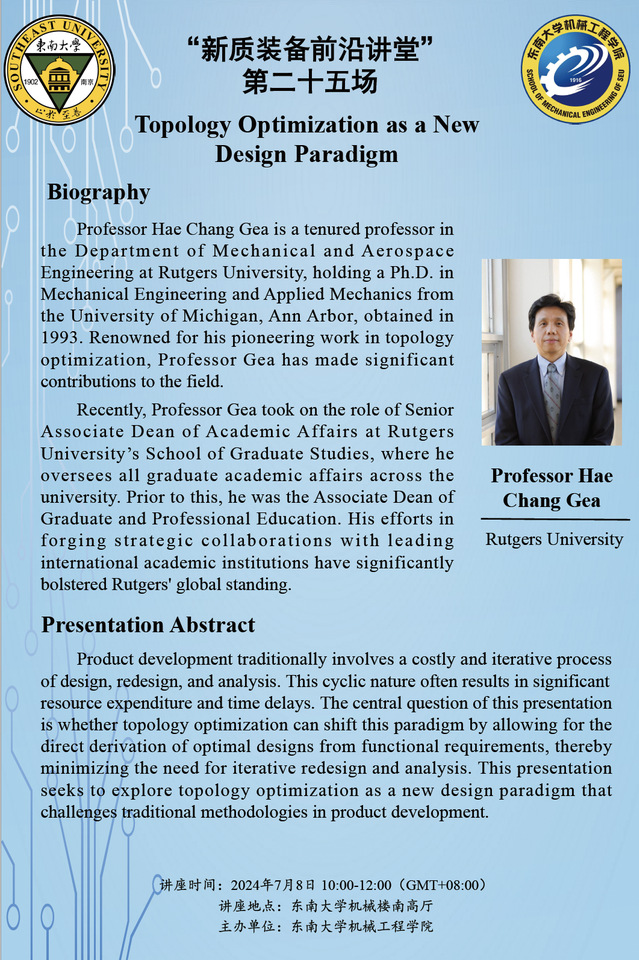 “新质装备前沿讲堂”第二十五场:Prof. Hae Chang Gea——Topology Optimization as a New Design Paradigm