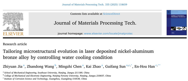 该研究阐明了水下环境影响微观结构和力学性能演变的机制。水冷条件下冷却速率的发现,为NAB合金乃至其他合金的修复(或制造)中获得性能良好的显微组织提供了新的工艺控制参考。这也为未来大型构件的水下原位修复奠定了理论基础。