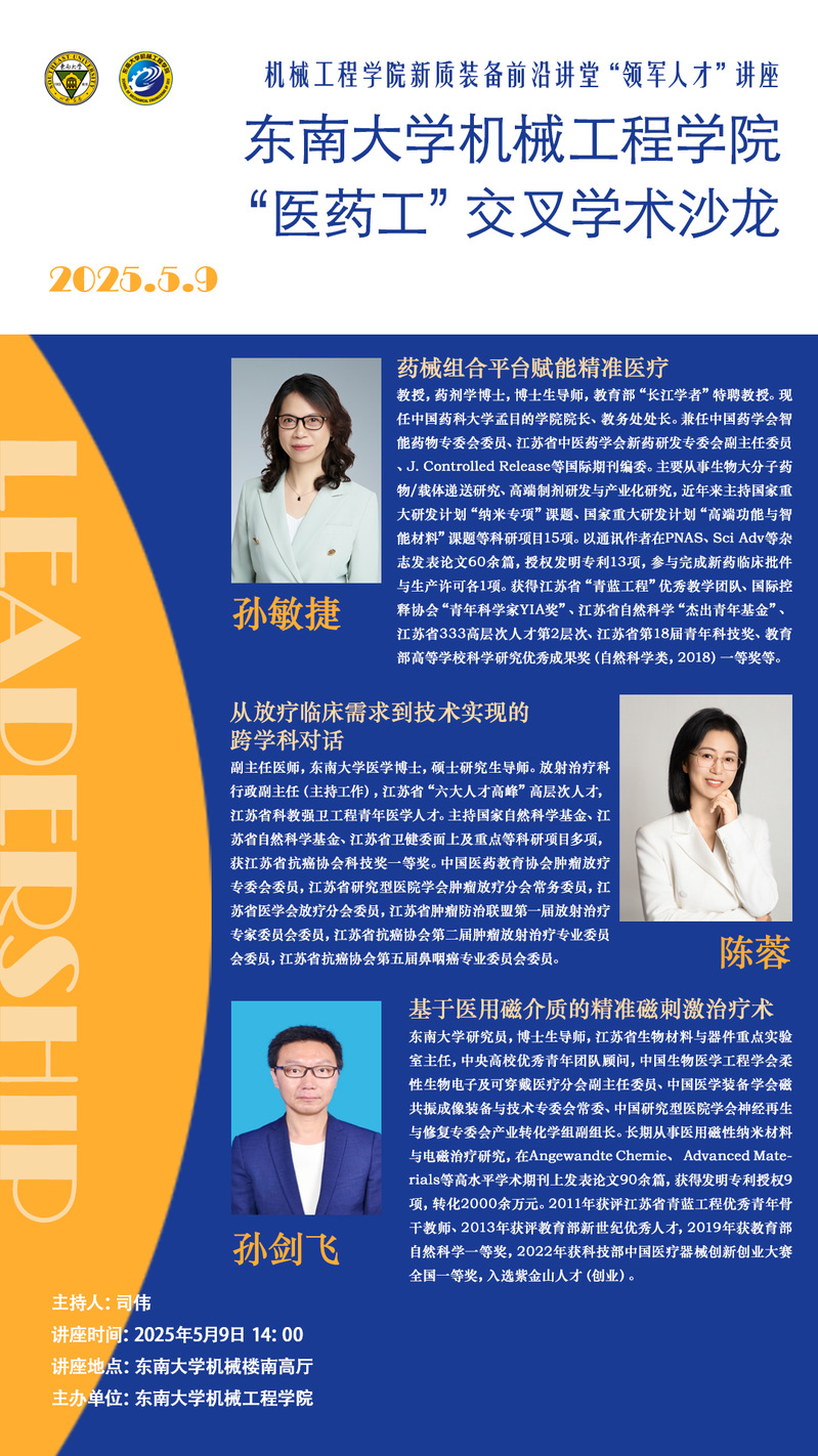 2025年机械学院“新质装备前沿讲堂”之“医药工”交叉学术沙龙