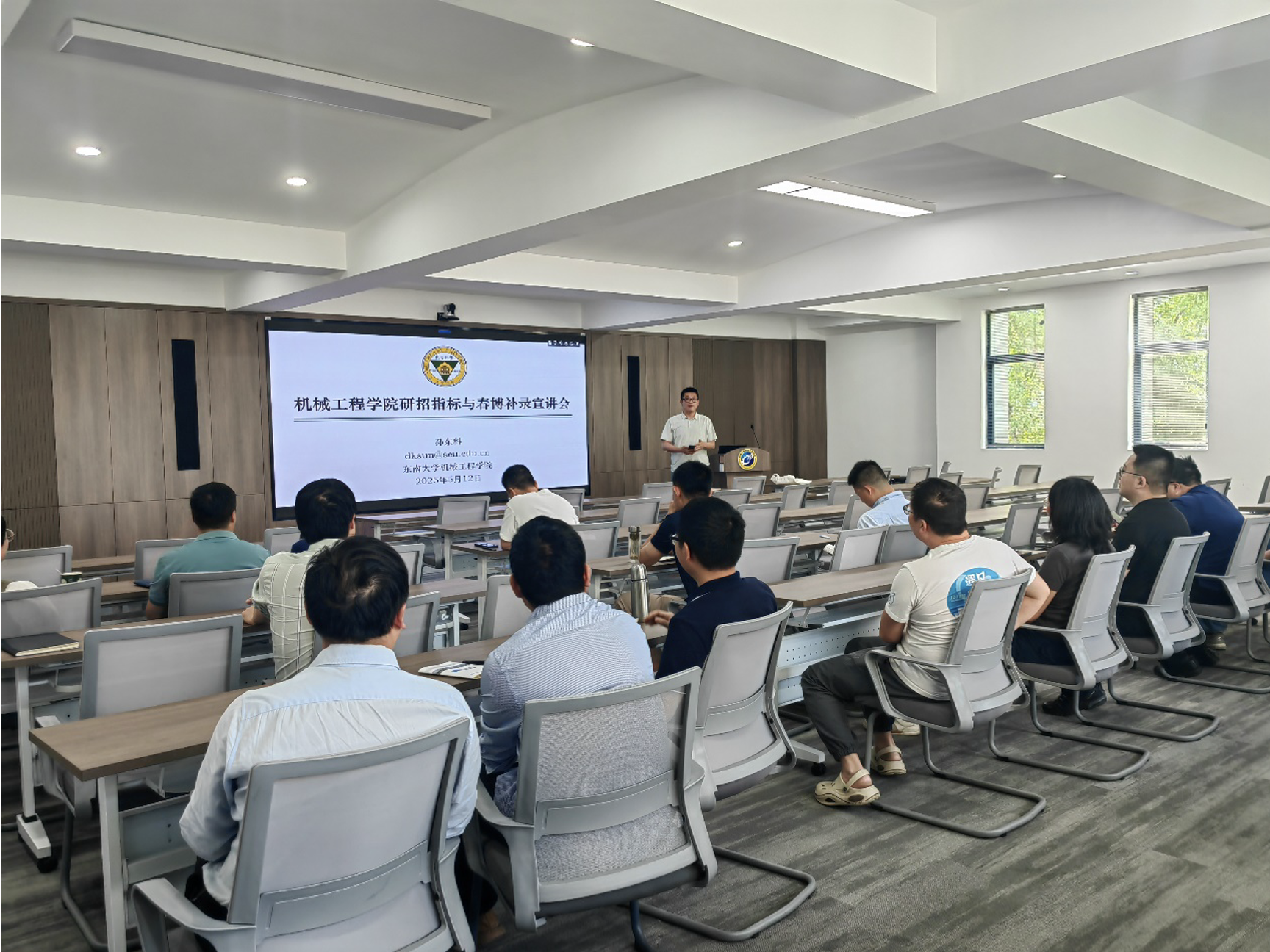 为积极落实校内巡视整改工作要求,解决导师普遍关注的研究生指标问题,进一步优化研究生招收、培养、毕业及学位授予工作,机械工程学院于2025年5月12日在南高厅召开以“破解研招指标难题暨研招指标分配与春博补录工作”为主题的专题会议。学院分管研究生工作的副院长孙东科教授、各专业方向导师代表共同探讨研究生招生指标相关事宜。