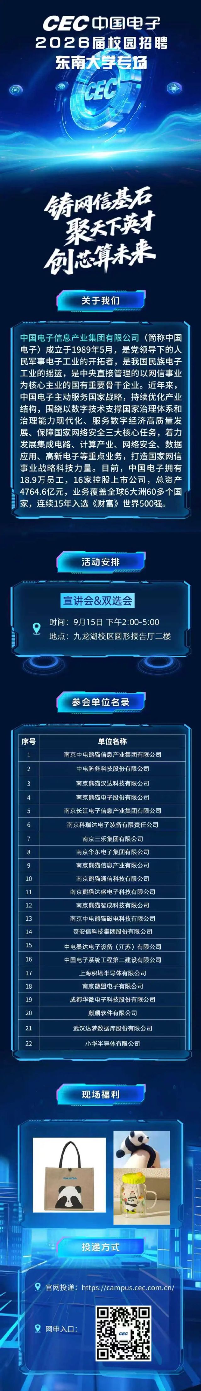 宣讲会 | 中国电子2026届校园招聘东南大学专场招聘会