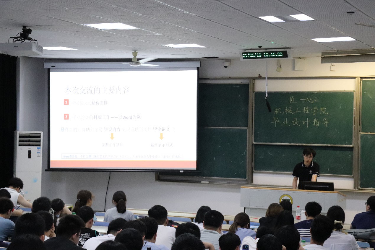 由共青团米兰平台委员会主办的“匠心”技能提升课堂——“毕业设计指导讲座”于2021年5月10日晚18:30在J6-101教室举行。此次讲座主讲人为刘畅学长。刘畅学长主要围绕“本科生毕业论文写作与排版”进行了讲演,让在场的每位同学都学有所得。