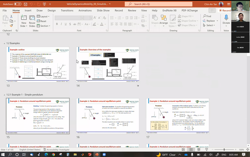 《智能汽车与自动驾驶》由来自美国韦恩州立大学的Chin-an Tan教授与校内庄伟超老师联合授课,课程主要通过动力学建模、稳定性分析及控制器设计等教学环节,辅以车辆二自由度汽车模型建模、分析与控制等整个实践环节,使学生了解智能汽车控制的基础与拓展,拓宽了学生的国际视野,并学会如何采用英文进行项目汇报与答辩。